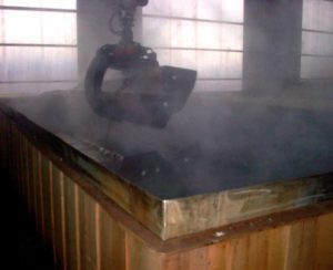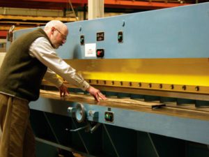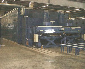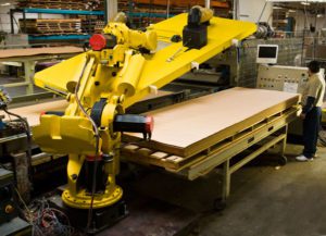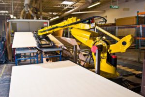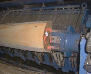 Finally, the panels are sanded. Panels with the grain running in the long dimension are fed though an in-line sander. Panels with the grain running across the short dimension are fed through a cross-belt sander. These sanders remove tape and produce a uniform surface on the plywood. After sanding, the panels are inspected one final time before being packaged and shipped to the customer.